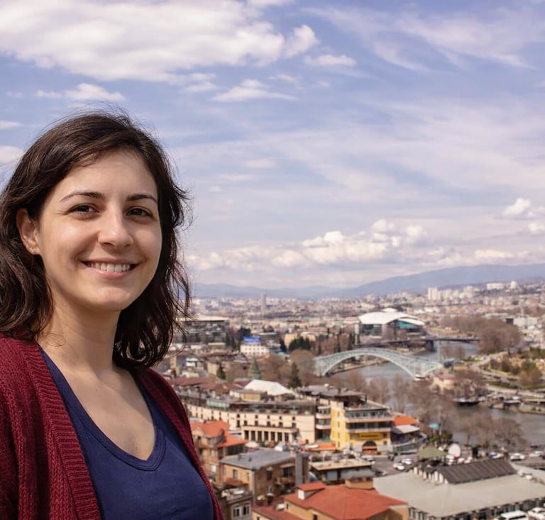 Nino was raised in the mountains in Svaneti. She remembers the years when many relatives and friends left in search of better opportunities. Those departures shaped her. While others went abroad, she chose to stay, holding on to language and culture. She studied languages and eventually mastered five of them. For Nino, teaching Georgian is not just about grammar or vocabulary. It is about helping people reconnect with their roots and feel that sense of belonging again. In her free time, she seeks out the lesser known corners of Georgia and likes traveling around Europe.